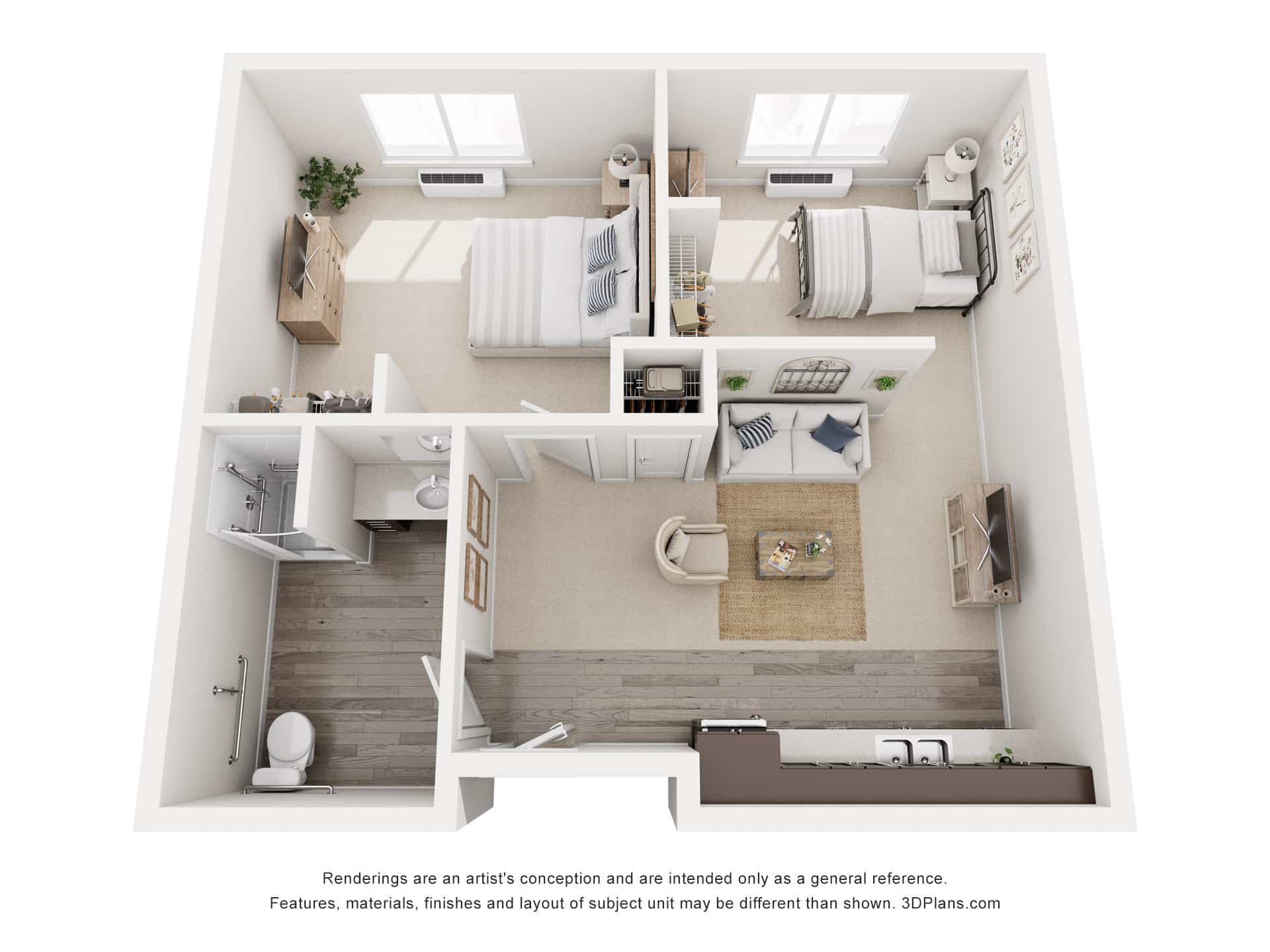 Residents enjoy the comfort of private assisted living apartments designed to support independence without the responsibilities of home maintenance. Each apartment offers a well-planned layout with spacious living areas, ample storage, and a convenient kitchenette, creating a comfortable, easy-to-manage place to call home.